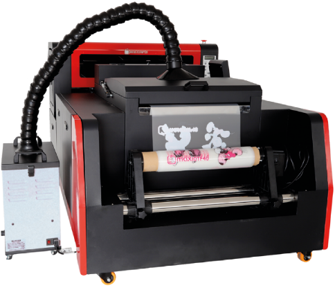 Máquina de impressão DTF que é uma junção de rapidez e design esteticamente apelativo. Produzindo a uma velocidade de 11m/h não se deixa ficar atrás no mercado. Possibilita impressões tanto a Cores <i>(CMYK)</i> como a Branco através do seu rolo de 400 mm de largura e 100 metros de comprimento.